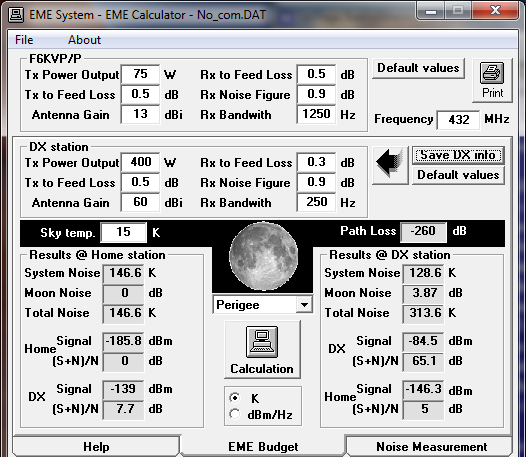 Les calculs théoriques avec le logiciel de F1EHN, pour le bilan de liaison laissaient espérer une réception un peu au-dessus du bruit (5dB).