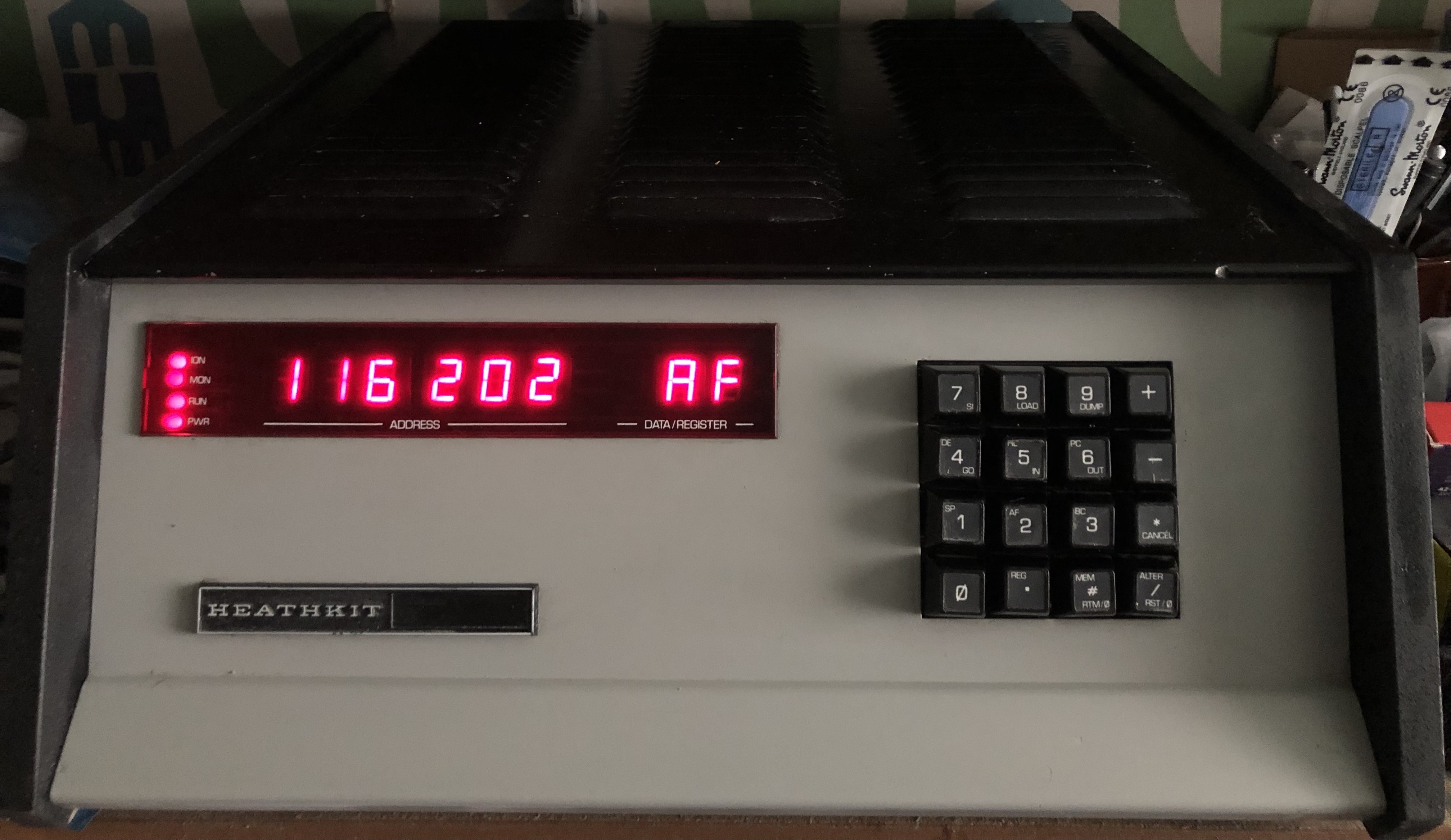 La même année j’ai assemblé une console Heathkit H9 (cela me demanda deux semaines) et un micro ordinateur H8 à base du microprocesseur 8080 Intel (fréquence horloge à 2 MHz !) avec 4 Kilo Octets et ensuite 8 Ko de mémoire RAM statique qui fonctionne toujours.