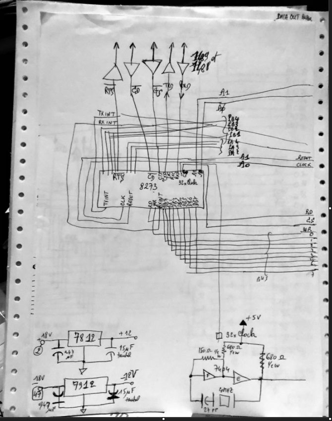 J’ai découvert le paquet-radio, destiné à remplacer le radiotélétype (RTTY), au travers des publications de l’AMRAD et je dois être une des premières stations française en 1984 à avoir expérimenté la transmission radio numérique à 1200 bauds par paquet en AX25 avec mon complice extrêmement compétent Rémy F6ABJ qui avait assemblé deux kits du contrôleur de paquets PK1 équipés de processeurs Z80 avec le code AX.25 en EPROM. En 1983 j’avais en effet construit, d’après une description de l’AMRAD, un répéteur paquet AX25, en wrapping sur une carte de développement du H8 avec un contrôleur HDLC 8273. Mais ce n’est qu’un an plus tard que j’ai pu valider cette réalisation en faisant se communiquer les deux PK1 via le répéteur, car auparavant il n’existait aucun moyen d’émettre de l’AX25.