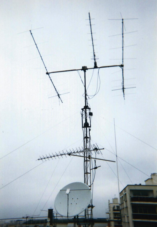 En Novembre 1987, j’ai remplacé mes antennes par deux 2 X 9 éléments croisées F9FT 145 MHz en polarisation circulaire et une KLM 22c UHF, plus des préamplificateurs et des câbles coaxiaux à faible perte. Ceci s’est traduit par le début des contacts via OSCAR-12 en mode BLU avec DL0XK, I8CVS, DC9UP, HB9RHV, DC6PX, I0LYL. Le satellite à orbite elliptique AMSAT OSCAR 13 a été lancé le 15 Juin, 1988 à 13:19. J’ai copié la télémesure en télégraphie d’AO-13 pendant l’orbite 7 le 18 Juin. Elle disait qu’après l’allumage du moteur d’apogée, le nouveau périgée du satellite était à 1500 Km et l’apogée à 36000 Km.