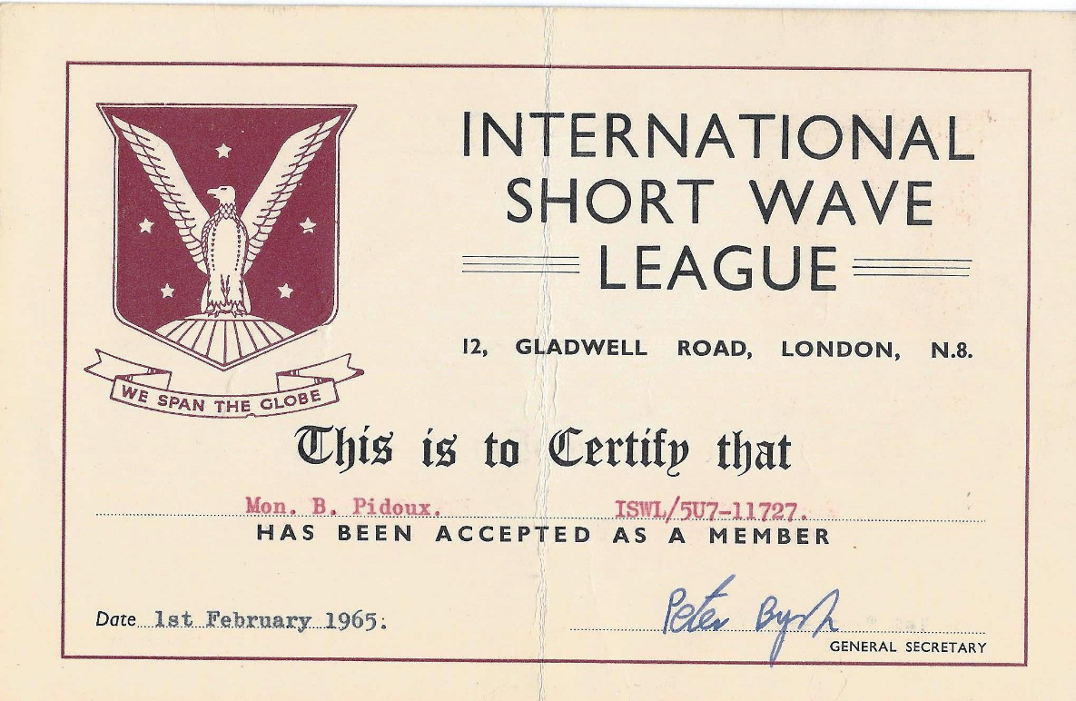 J’ai donc commencé par écouter les radioamateurs comme écouteur SWL (Short Wave Listener).