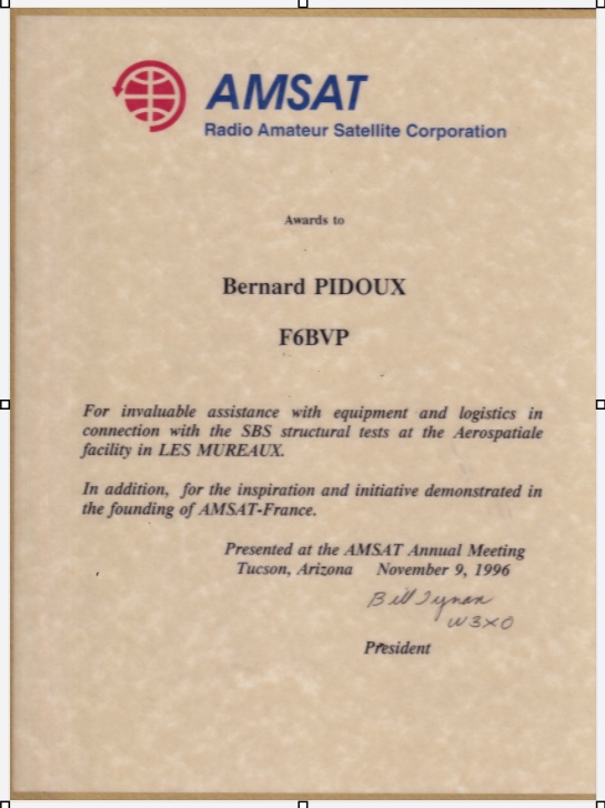- Sous la présidence de F6BVP, l’AMSAT-France a mené avec succès plusieurs projets de microsatellites dont quatre ont été lancés dans l’espace :