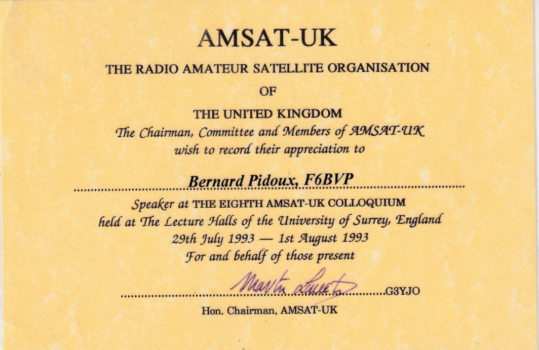 - 1993 – Eigth AMSAT-UK colloquium